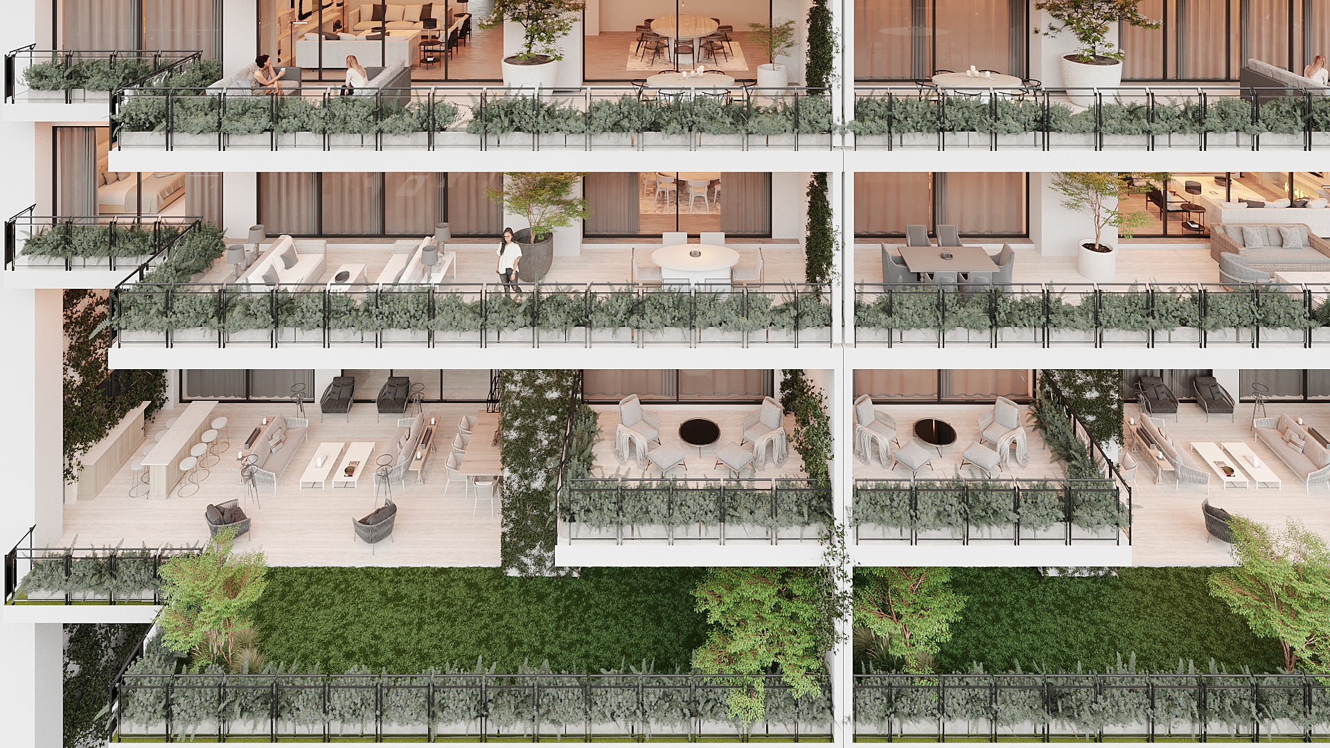 Cada departamento cuenta con un vestíbulo, sala-comedor y terraza que expande la vida al exterior. Disfruta tres recámaras (dos con baño y vestidor) y principal tipo suite; cocina con isla, lavandería, cuarto de servicio con baño, y elevador/escaleras de servicio más iluminación natural superior.