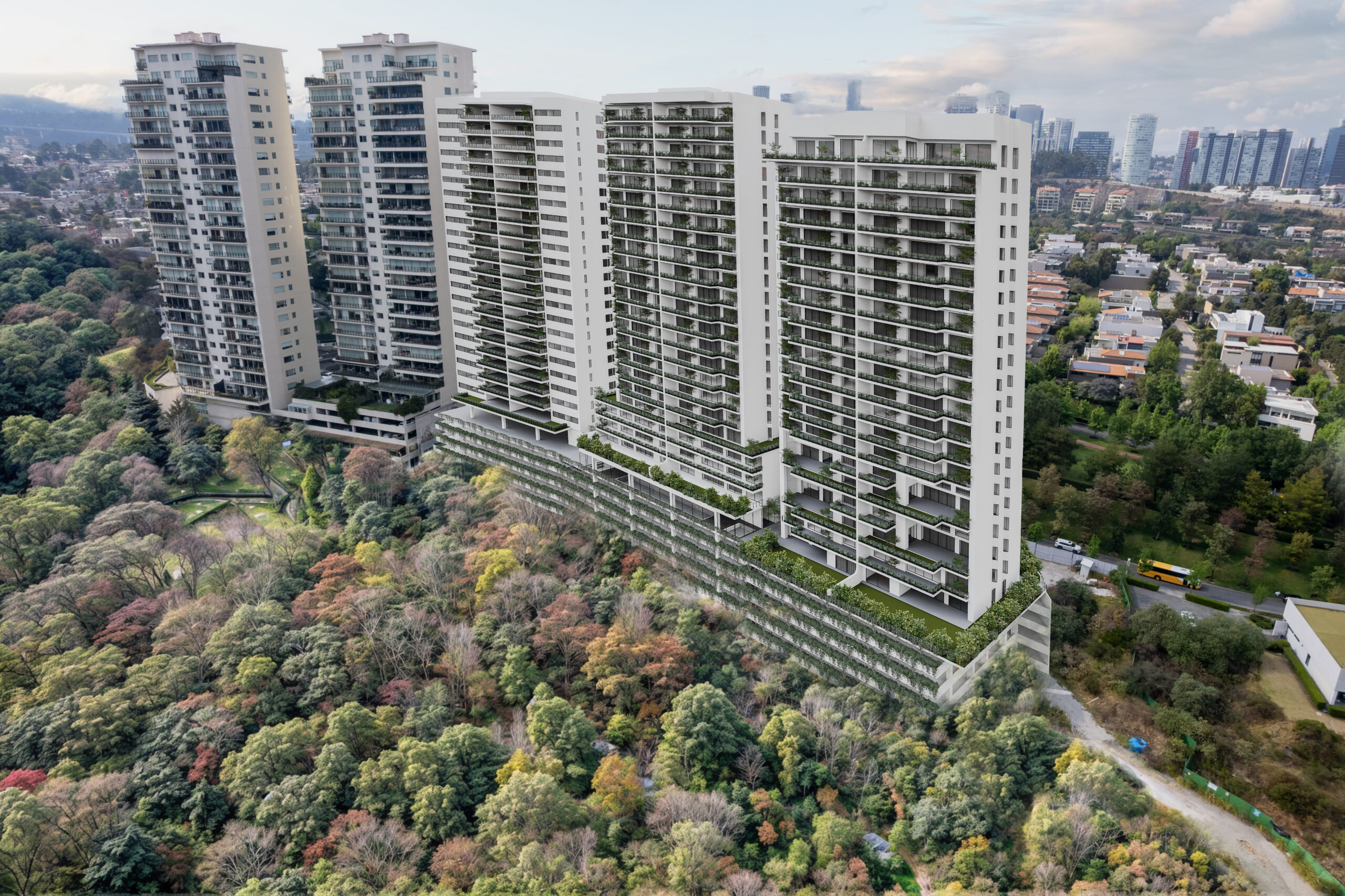 El Encinar te coloca en lo mejor de Cumbres de Santa Fe; vive en una torre exclusiva de 44 departamentos —solo dos por nivel— con amenidades de doble altura en planta baja.